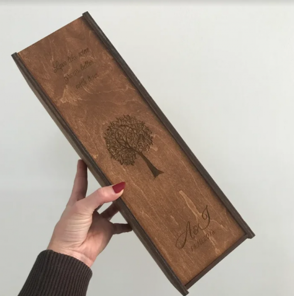 Коробка з дерева – прекрасний варіант упаковки для пляшки вина, шампанського, віскі. Завдяки такій коробці з персональним лазерним гравіюванням ваш подарунок зі звичайного перетворитися на справді унікальний!