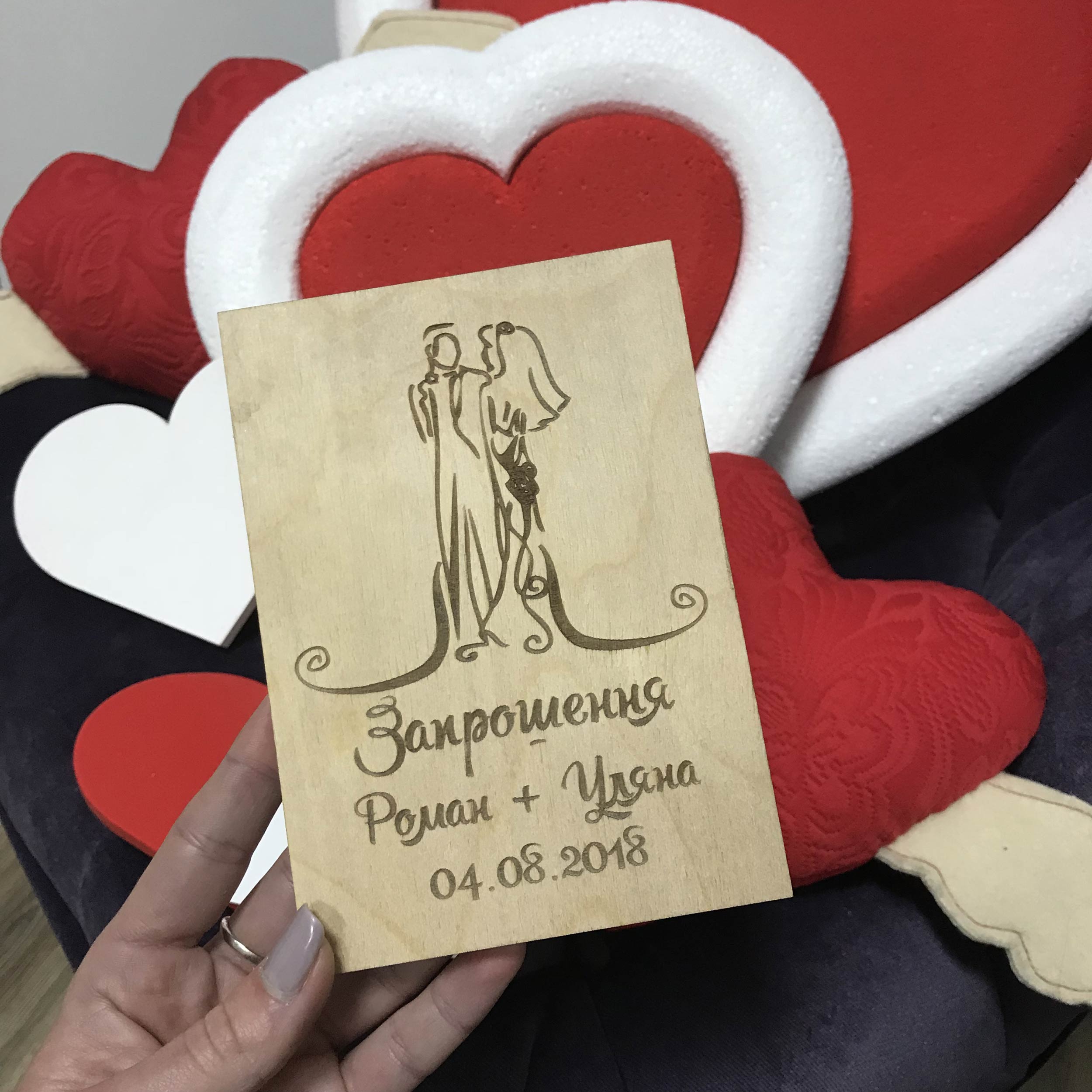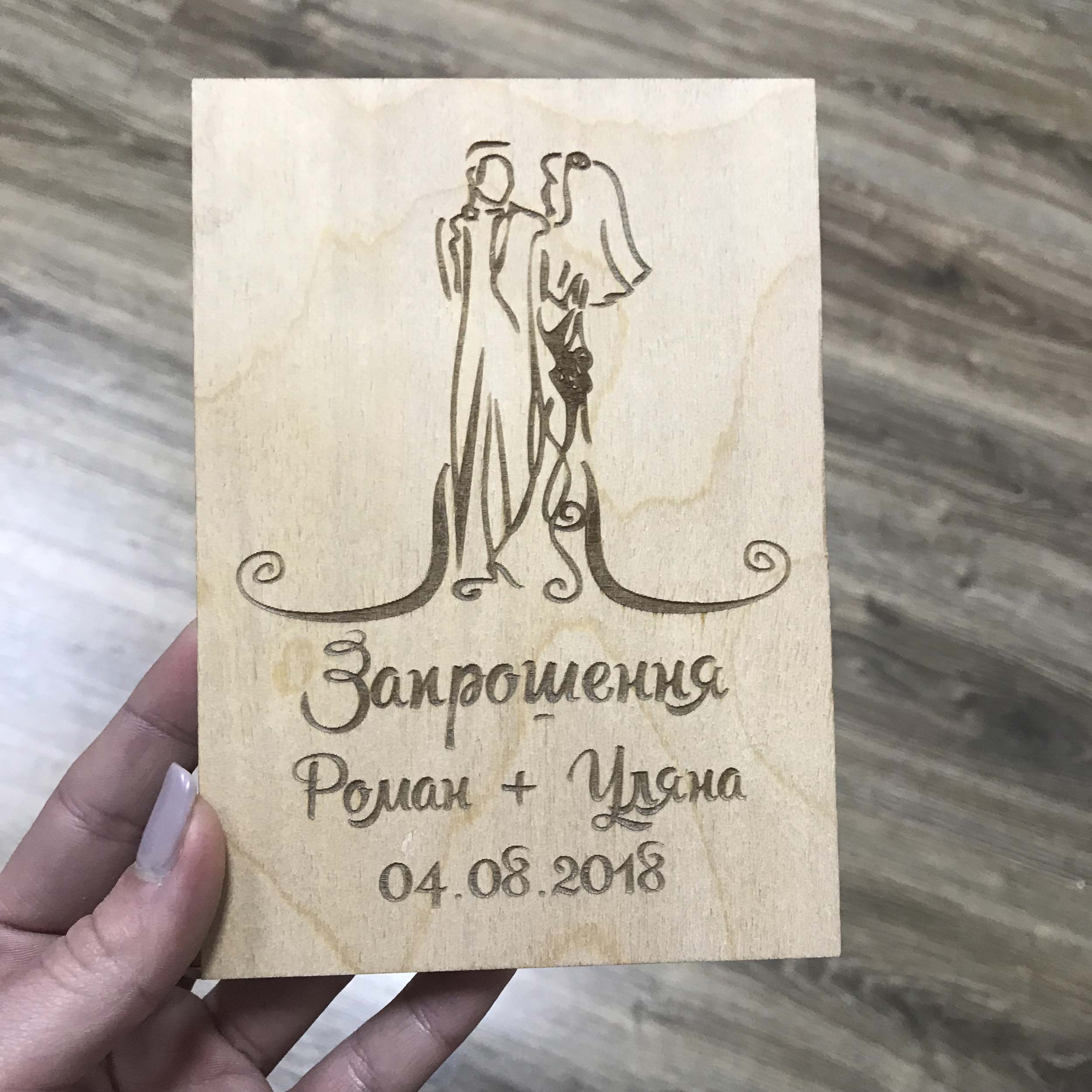 Матеріал – високоякісна фанера, завдяки якій ваше запрошення виглядатиме ідеально.