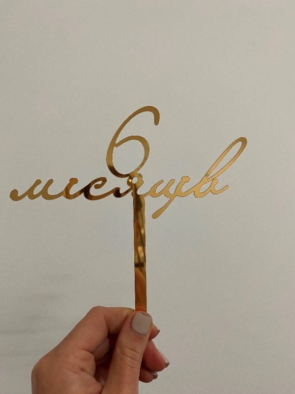 Топпер фигурка на торт зеркальный двусторонний Manific Decor “6 месяцев” на День рождения