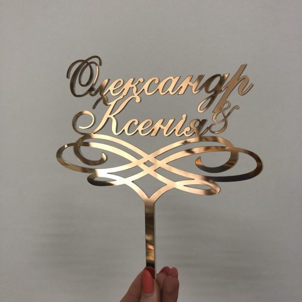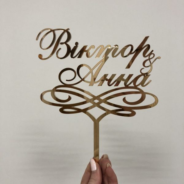 Топпер фигурка на свадебный торт зеркальный двусторонний Manific Decor “Имена с декором”