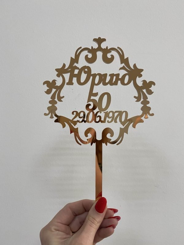 Топпер фигурка на торт зеркальный двусторонний Manific Decor “С Днем рождения Юляся”