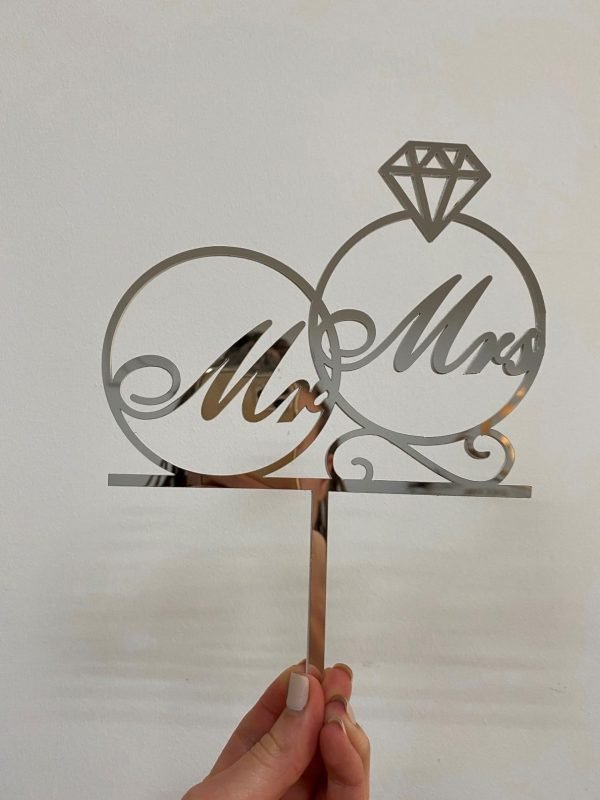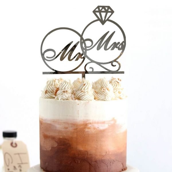 Magnifique Boutique » Магазин » Праздничный декор » Топперы на торт » Топпер фигурка на свадебный торт зеркальный двусторонний Manific Decor “Mr & Mrs в кольцах”