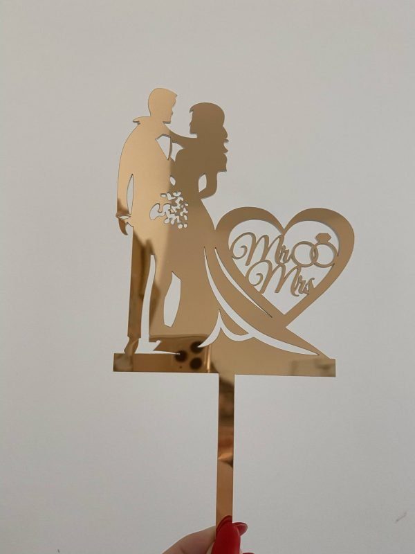 Magnifique Boutique » Магазин » Праздничный декор » Топперы на торт » Топпер фигурка на торт зеркальный двусторонний Manific Decor “Свадебная пара с кольцами Mr & Mrs”